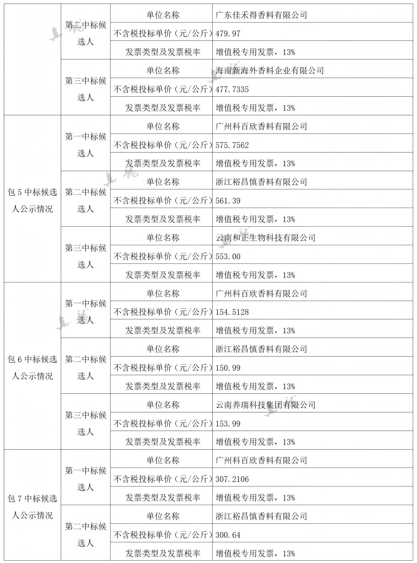 廣西中煙工業(yè)有限責任公司2026-2028年自主品牌香精香料采購之復(fù)合體采購第一批(項目編號:B202501BA2001767947560)中標候選人公示