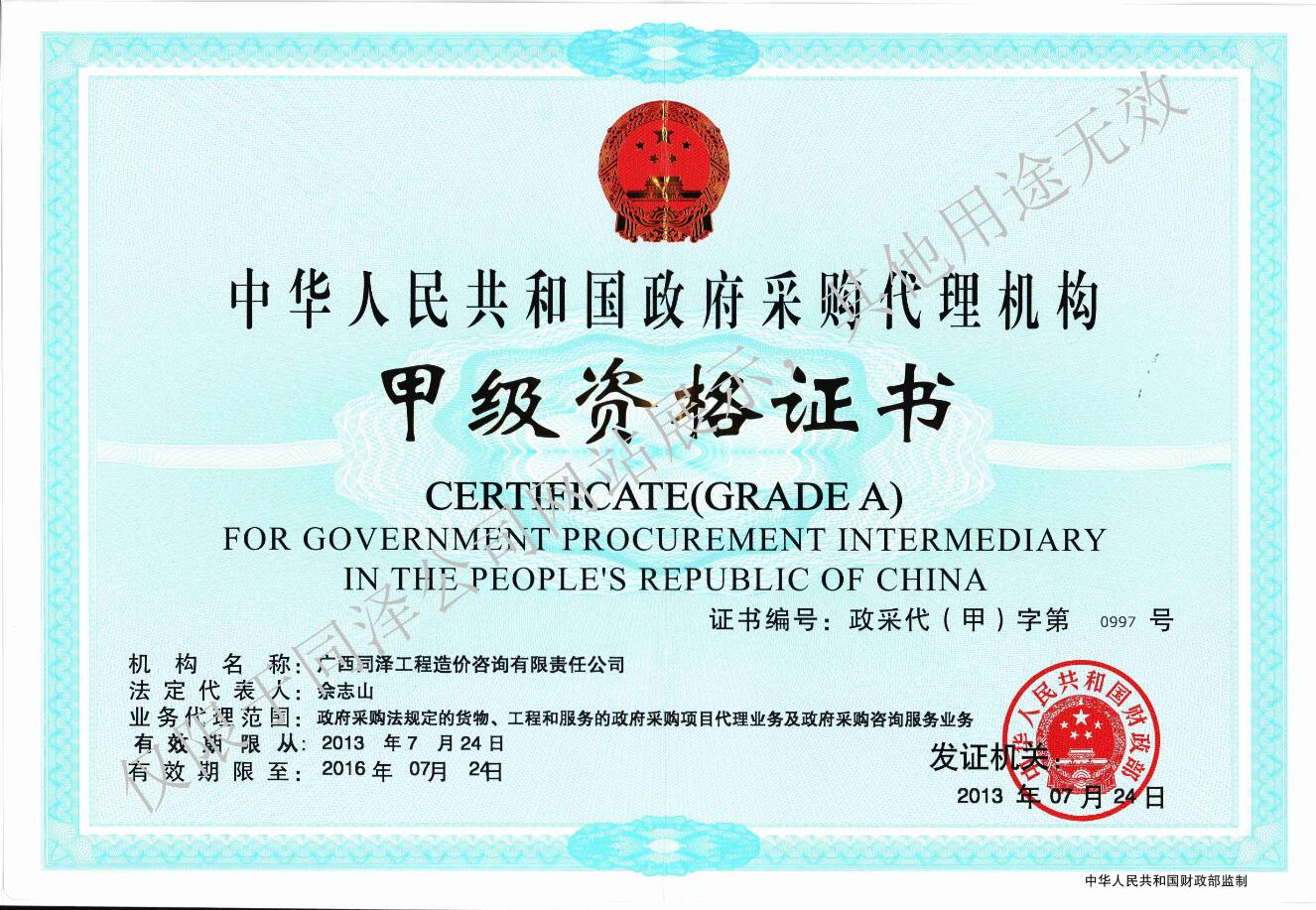 政府采購代理甲級資質(zhì)