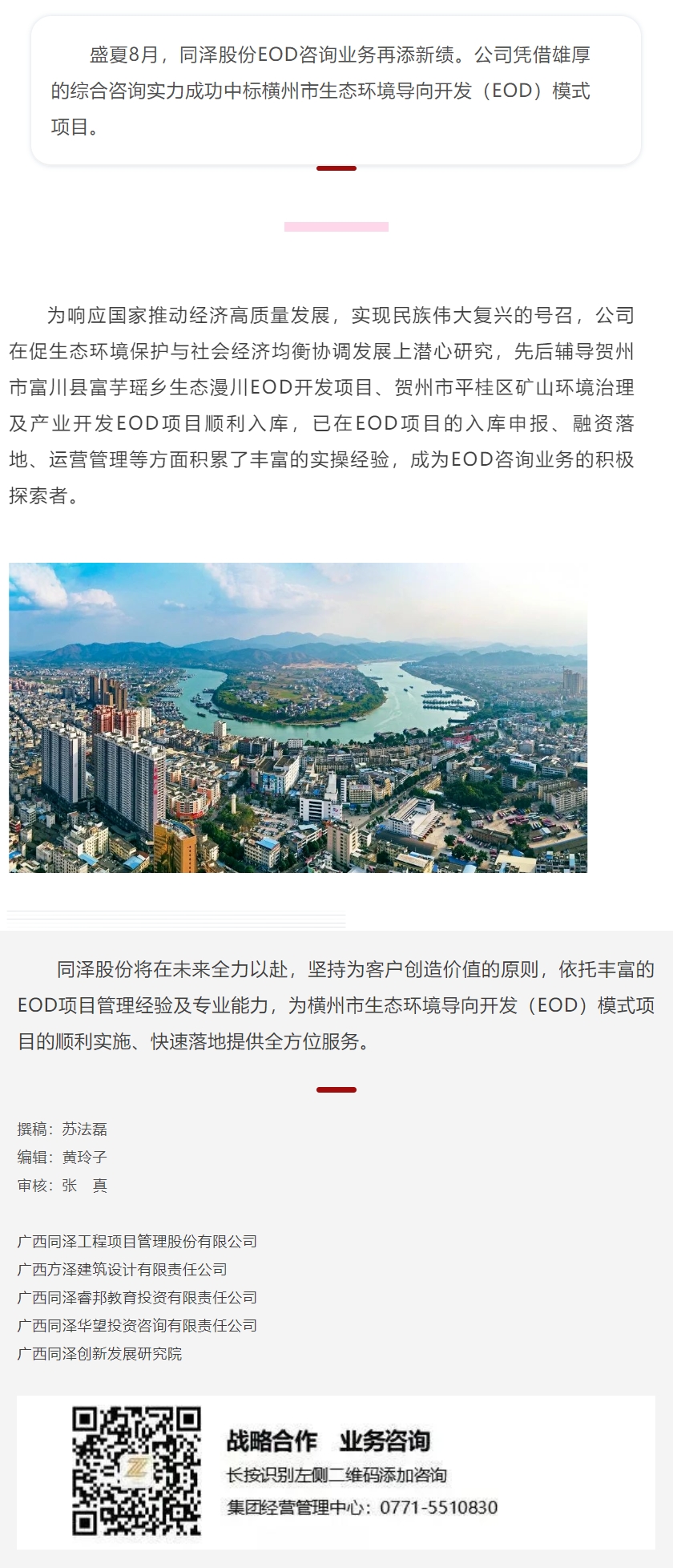 中標資訊 | 同澤股份成功中標橫州市生態(tài)環(huán)境導(dǎo)向開發(fā)(EOD)模式項目